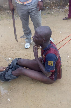 The man pictured above was caught few hours ago stealing in Yenagoa, Bayelsa state. Twitter user @Roland-speaks who shared the photos didn’t say what exactly the man was caught stealing. He simply wrote; "We Just caught a thief in yenegoa we are dealing with him while we wait for the police." See another photo below;